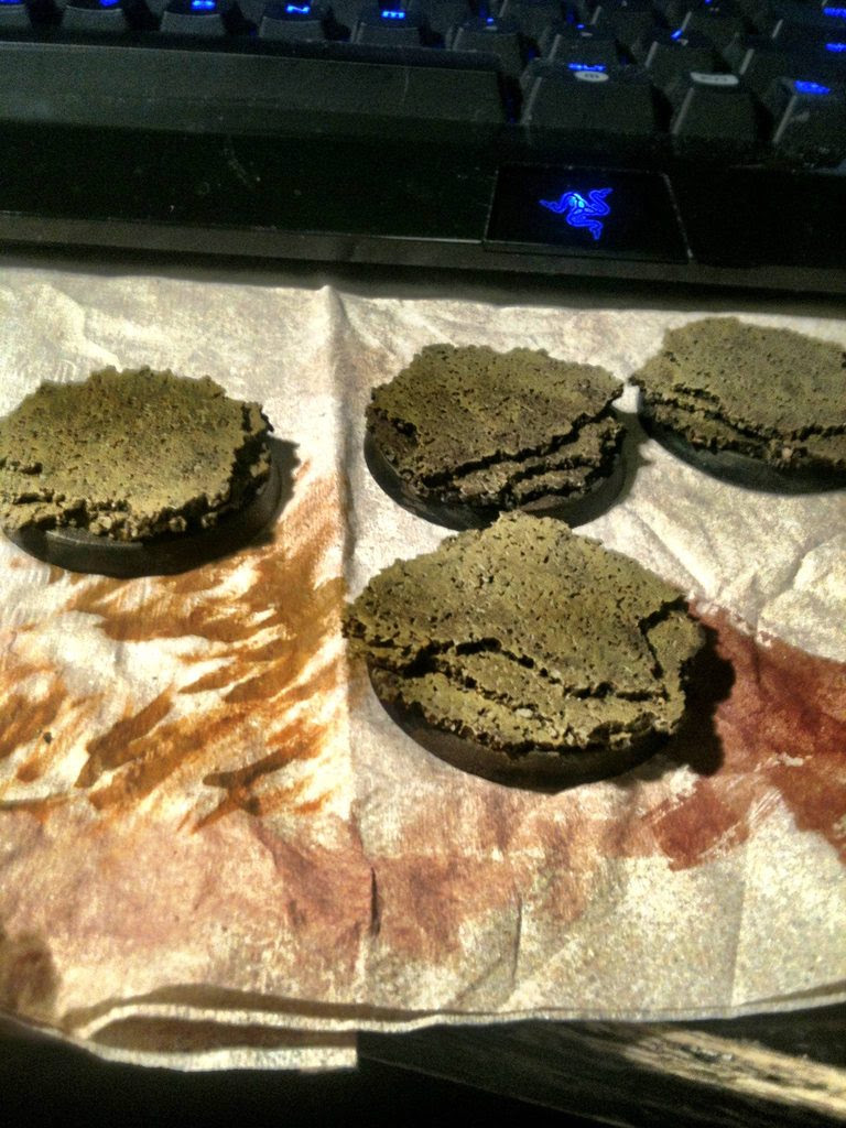 i put about this much on each base and used an old paintbrush to spread it around into all the cracks and crannys of the base